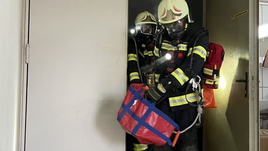 Übungsannahme war eine Explosion in einem Heizhaus, zu der es bei Wartungsarbeiten an einer Gasheizung kam. Die Trupps mussten den Brand unter stark vernebelten Bedingungen lokalisieren und bekämpfen, eine Gasflasche ins Freie bringen, eine vermisste Person finden und in Sicherheit bringen, was höchste Konzentration und präzises Vorgehen erforderte.