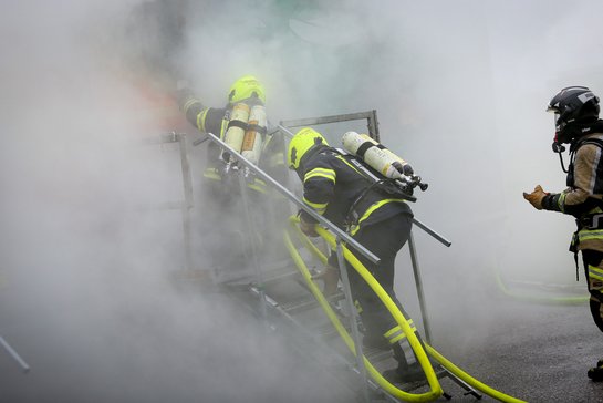 SATTLEDT â Von 21. â 23. Oktober 2022 bot die Firma DrĂ€ger in Sattledt den Feuerwehren des Bezirkes Wels-Land ein Realbrandtraining im gasbefeuerten FireDragon 7000 an.