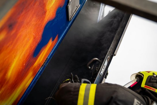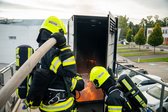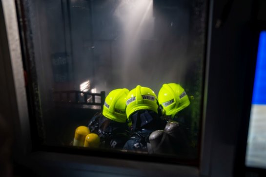 Für viele der frisch ausgebildeten Atemschutzträger war es die erste echte Bewährungsprobe – ihre Feuertaufe. Doch bevor es in den glühenden Brandcontainer ging, stand eine intensive Schulung auf dem Programm: der richtige Umgang mit dem Hohlstrahlrohr. Was von manchen belächelt wird – „a bisserl spritzen wird man schon können“ – entpuppte sich als hochkomplexe und entscheidende Technik. Denn bei einem Zimmerbrand kann der gezielte, dosierte Einsatz von Löschwasser über Erfolg oder Misserfolg entscheiden. Eine effektive Deckenkühlung kann den Unterschied machen – zwischen einem lokal begrenzten Brandschaden und einem durch Löschwasser zerstörten Wohnbereich. Im Brandcontainer selbst wurde es dann ernst: Hitze, Rauch, Nullsicht – realitätsnahe Bedingungen, die den Teilnehmern alles abverlangten. Hier zeigte sich, wer Nerven behält, wer sein Gerät beherrscht und wer im Team funktioniert. Jeder Trupp musste sich aufeinander verlassen können – wie im echten Einsatz.