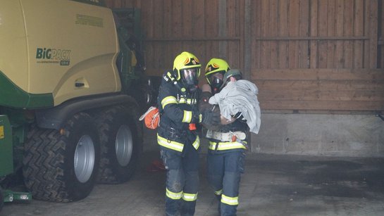 Das Übungsszenario bestand aus einem Crash zwischen einem PKW und einem Traktor der unmittelbar an einer landwirtschaftlich genutzten Maschinenhalle stattfand. Der PKW fing Feuer und setzte auch die Maschinenhalle in Brand, in der sich sechs spielende Kinder befanden. Auch im PKW befanden sich drei Kinder. Durch die Atemschutztrupps konnte der Brand des PKWs gelöscht werden und diese drei Kinder aus dem PKW gerettet werden, wobei eines davon mit einer Crashrettung heraus geholt werden musste. Die anderen beiden wurden schonend aus dem verunfallten Fahrzeug mithilfe des hydraulischen Rettungsgerätes befreit und dem Notarzt übergeben. Währenddessen begab sich ein weiterer Atemschutztrupp auf die Suche nach den abgängigen Kindern in die stark verrauchte Maschinenhalle. Dort konnten alle Personen gerettet und das Feuer gelöscht werden. Zusätzlich wurde noch die Wasserversorgung von dem nächstgelegenen Löschwasserbehälter sichergestellt. Die Abwicklung all dieser Aufgaben wurde durch einen äußerst unruhigen und aufgebrachten Hausbesitzer erschwert.