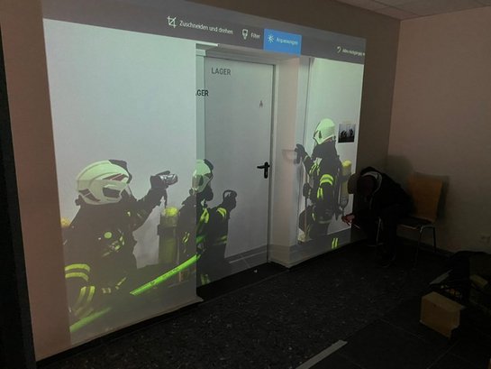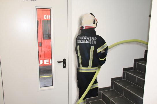 Das fertige Kunstwerk zeigt einen Innenangriff unter Atemschutz im 1. Obergeschoß. Dieses Unikat verschönert ab sofort den Eingangs- und Stiegenhausbereich, sowie den Bereich vor dem Schulungsraum im 1. Stock.