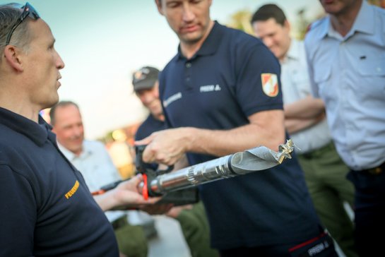 Neben den unterschiedlichen Fachvorträgen gab es diesmal auch eine Vorführung am Freigelände. Sämtliche Feuerwehren, welche im vergangenen Jahr Stützpunktgeräte verlagert bekommen hatten, fanden sich ein um die Ausrüstung den Führungskräften im Detail zu erklären. Vor allem im Großschadens- und Katastrophenfall ist es unumgänglich auch die Möglichkeiten unserer Spezialgeräte genau zu kennen.