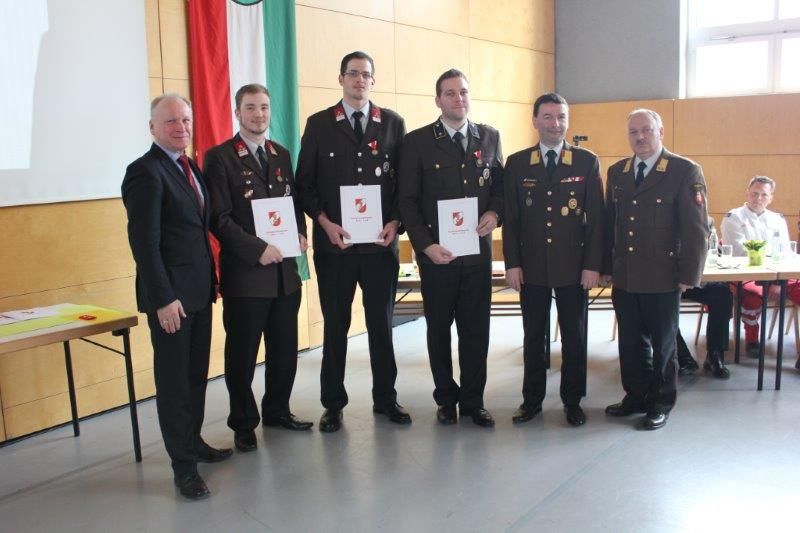 WEISSKIRCHEN - Die FF Weißkirchen hielt am Sonntag, den 06. März 2016 die Vollversammlung in der Turnhalle Weißkirchen ab. Kommandant ABI Wasserbauer Roland konnte zahlreiche Ehrengäste begrüßen: Bürgermeister Norbert Höpoltseder, Vizebürgermeister Klaus Holzleitner, den Obmann des Musikverein, den Obmann der Landjugend, den Obmann des Bauernbundes und den Obmann des Kameradschaftsbundes. Weiters waren anwesend der Polizeipostenkommandant von Marchtrenk Herr Breitwieser, der Ortsstellenleiter-Stellvertreter vom Roten Kreuz Marchtrenk Herr Mayrhofer sowie der HAW für Jugendarbeit im Bezirk Wels-Land Otto Hüttner und der Abschnitts-Feuerwehrkommandant Brandrat Burgstaller Heinrich. Kommandant Roland Wasserbauer berichtete über ein normales Feuerwehr Jahr. Es galt 104 Technische und 21 Brand-Einsätze abzuarbeiten. Es wurden für Übungen, Schulungen, Jugendarbeit, Ausrückungen sowie Verwaltungsarbeiten insgesamt 5686,56 Stunden aufgewendet. Zudem absolvierten vier Kameraden 52 Dienste in der Bezirkswarnstelle Wels. Erfreulich war der Austausch des KLF (Baujahr 1977) durch ein neues KLF-L (Logistik), welches beim Frühschoppen im Juni 2015 in den Dienst gestellt werden konnte. Zahlreiche Feuerwehrmänner wurden befördert oder ausgezeichnet: HBM Patrik Feichtinger, HBM Hannes Zehetner, AW Michael Neulinger wurden mit der Feuerwehr-Verdienstmedaille in Bronze ausgezeichnet. AW Roland Wittinghofer mit der Feuerwehr Verdienstmedaille in Silber ausgezeichnet. E-HBM Florian Glück wurde mit der Feuerwehr-Dienstmedaille für 40 Jahre Mitgliedschaft in der FF Weißkirchen ausgezeichnet. BM Markus Neubauer, Geschäftsführer Fa. Fazeni in Allhaming, und Herr Erwin Baumgartner, Gastwirt in Weißkirchen, beide große Gönner der FF Weißkirchen, wurden mit der Flamme des Bezirkes Wels-Land ausgezeichnet.